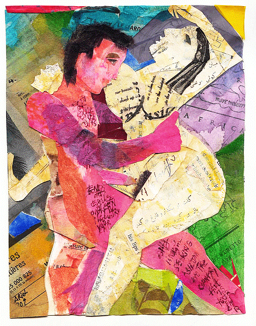 Painted and found papers on paper