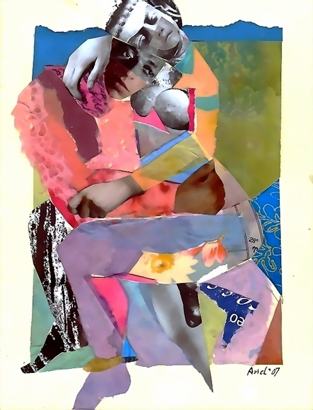 Painted and found papers on paper