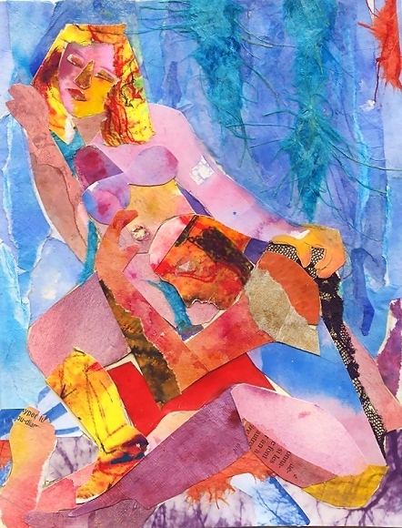 Painted and found papers, digital print, lace on paper