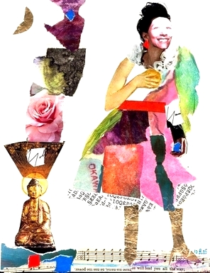 Meanwhile, painting was a love that I had deferred for many years. In the late '80's, I took an art class. Inspired by a dream I had in which Miles Davis gave me a bag of chalk pastels in many colors, I worked in this medium, in abstracts, for a number of years until, falling in love with the art of Romare Bearden, I turned to figurative collage.